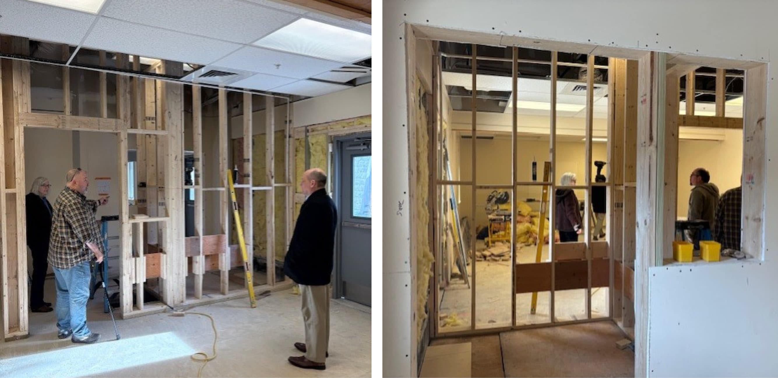 Framing is up for our bathrooms! Featuring direct access from both classrooms, because when you gotta go, you gotta go!